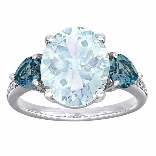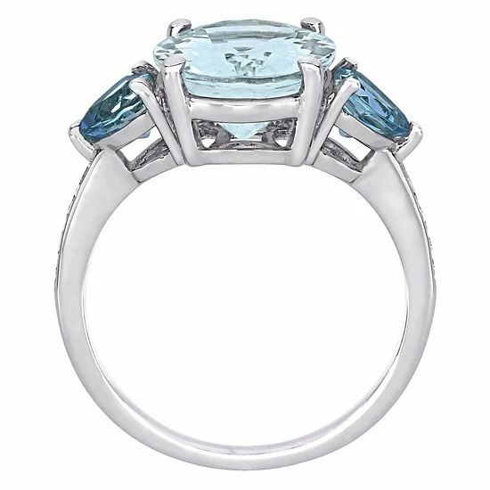 Add a breathtaking accent to your attire with this Stella Grace sterling silver aquamarine and blue topaz 3-stone ring.