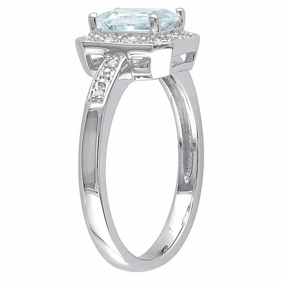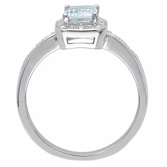 Featuring an emerald-cut, aquamarine center stone and dazzling diamond accents, this Stella Grace halo ring adds a touch of radiance to any ensemble.