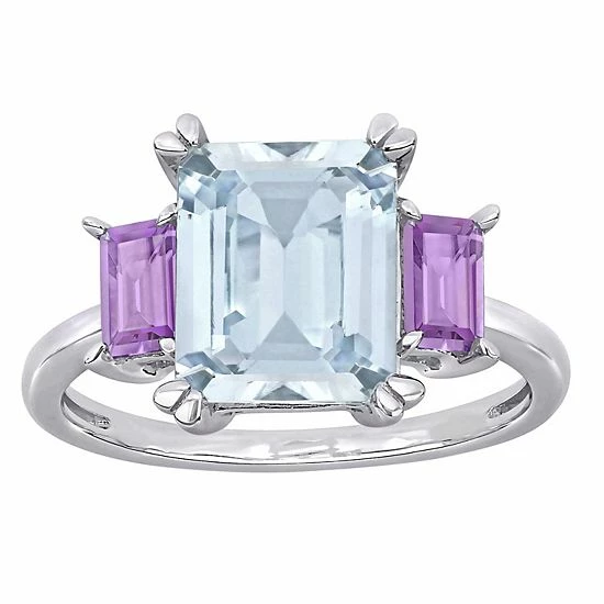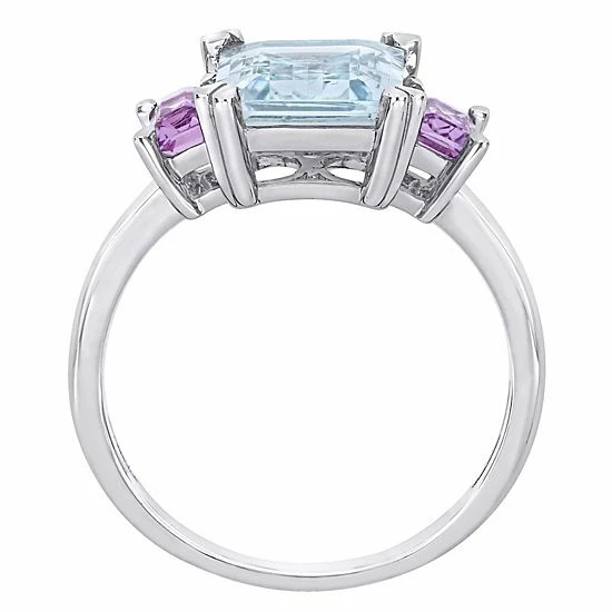 Add an elegant accent to your attire with this Stella Grace sterling silver aquamarine and Rose De France amethyst 3-stone ring.