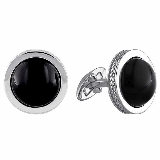 Add a touch of drama to your dress shirts with these Stella Grace sterling silver and onyx cufflinks, featuring eye-catching braided details.