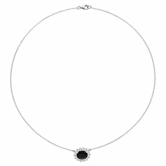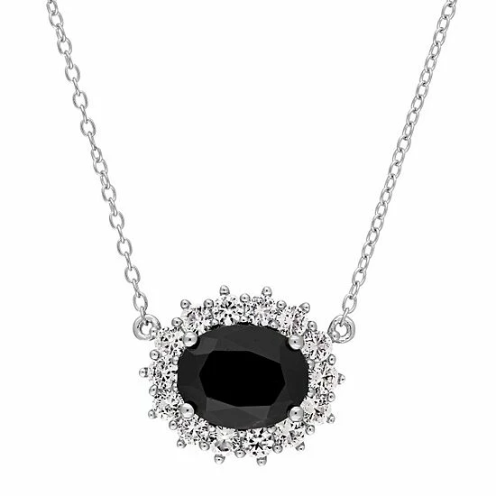 Dazzling with a black sapphire center stone and shimmering lab-created white sapphire accents, this sterling silver necklace exudes timeless style.