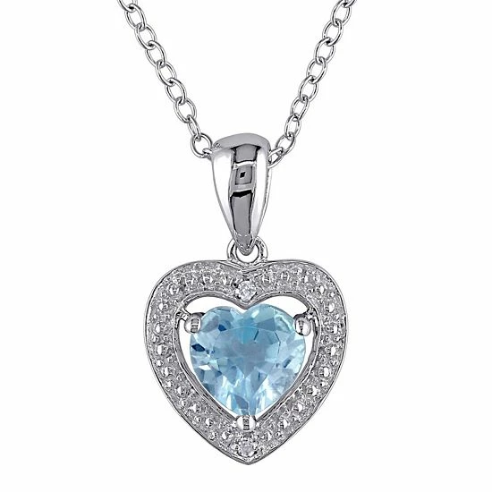 Adorned with a heart-cut blue topaz center stone encircled with round-cut diamond accents, this Stella Grace heart ring captivates from every angle.