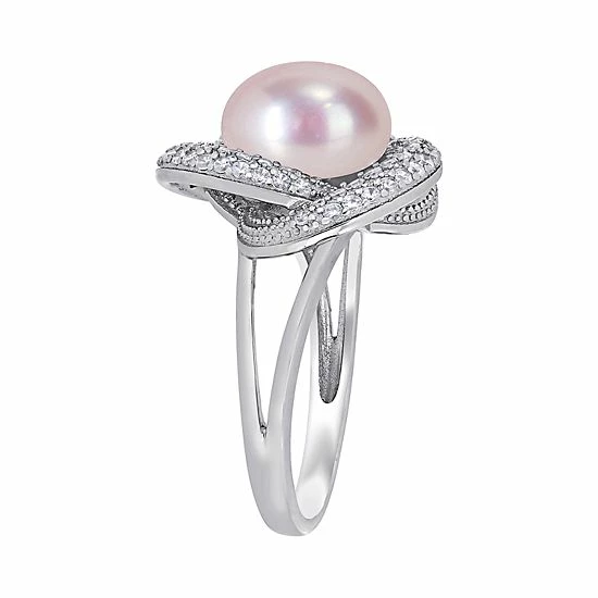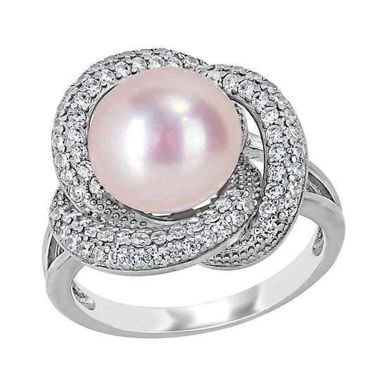 Featuring a dyed pink freshwater cultured pearl and CZ accents set in a stylish knot motif, this Stella Grace ring enhances your ensembles in an elegant way.