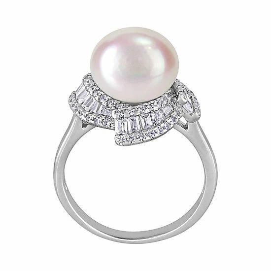 Featuring a freshwater cultured pearl wrapped in cubic zirconia accents, this sterling silver ring is a glamourous addition to your wardrobe.