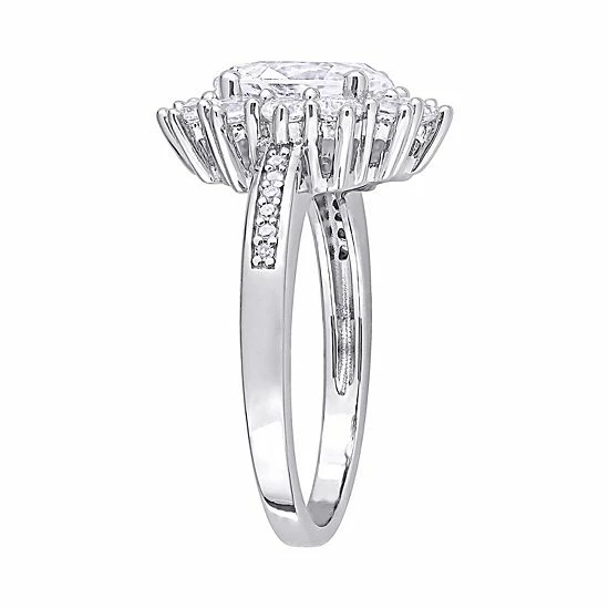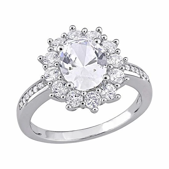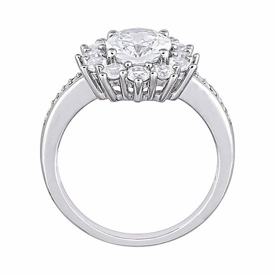 Featuring a lab-created white sapphire center stone and scintillating diamond accents, this Stella Grace ring is sure to captivate.