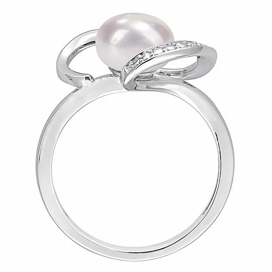 Your style will stand out whenever you wear this Stella Grace freshwater cultured pearl flower and diamond accent heart ring.