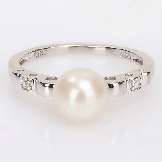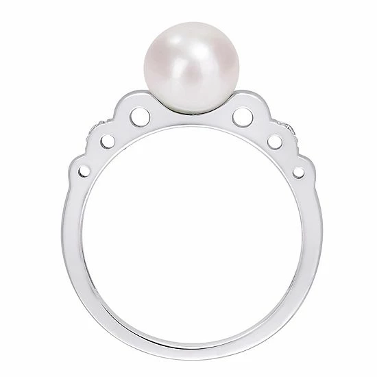 With a luminous freshwater cultured pearl and lab-created white sapphire accents, this Stella Grace ring has a scalloped band for an accessory you’ll love.