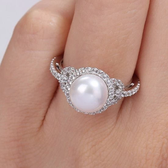 Adorned with a freshwater cultured pearl and sparkling topaz accents, this Stella Grace sterling silver ring is a beautiful accessory you’ll love.