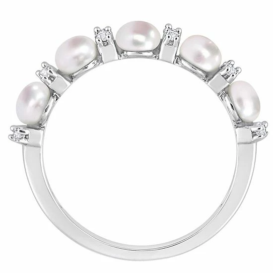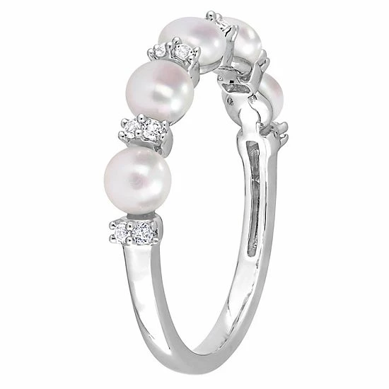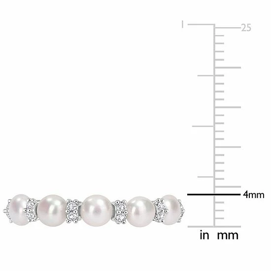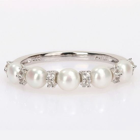 Celebrate your everlasting bond with this Stella Grace wedding ring, adorned with beautiful freshwater cultured pearls and white topaz stones in a semi-eternity band.