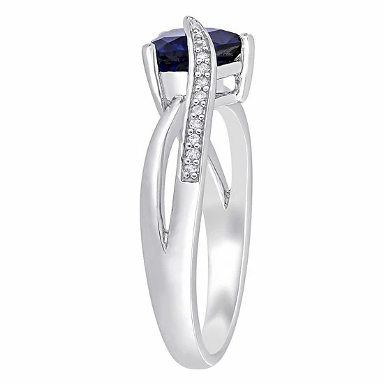 Featuring a heart-cut, lab-created sapphire center stone accented with scintillating diamond accents, this Stella Grace ring radiates romance.