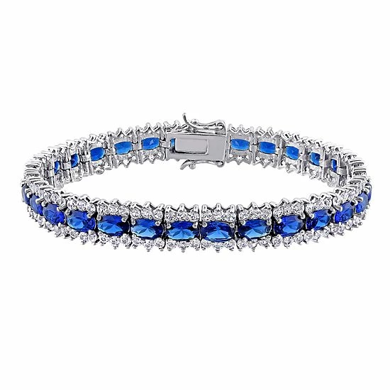 Featuring dazzling lab-created blue and white sapphire gemstones, this Stella Grace tennis bracelet completes your look in a captivating way.
