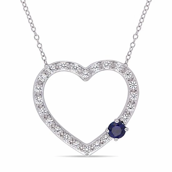 Delight in the elegant beauty of this lab-created blue and white sapphire heart pendant necklace.