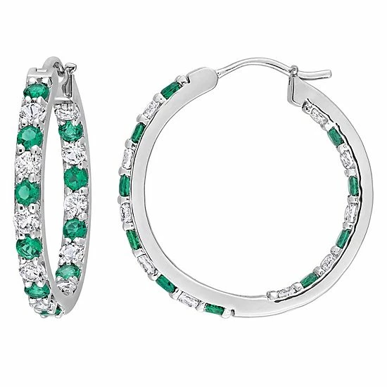 Featuring dazzling lab-created emeralds and lab-created white sapphires, these beautiful Stella Grace inside-out earrings are the perfect way to finish any special outfit.