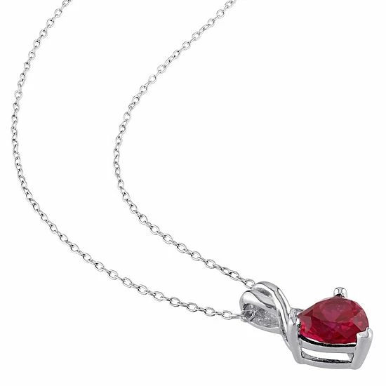 This gorgeous sterling silver lab-created ruby and diamond accent heart twist pendant necklace and earring set is a must-add to your fine jewelry collection.