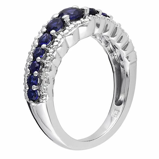 Adorned with a row of dazzling, lab-created sapphires, this Stella Grace ring is truly captivating.