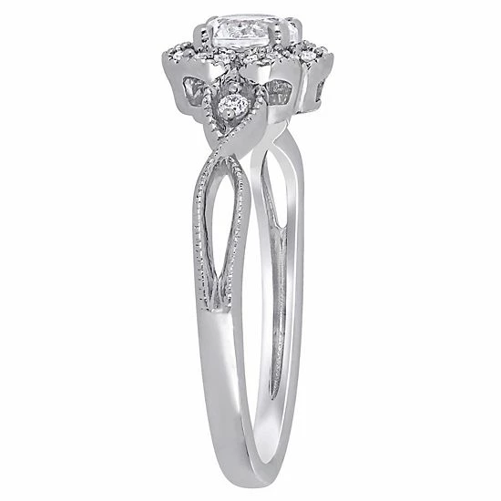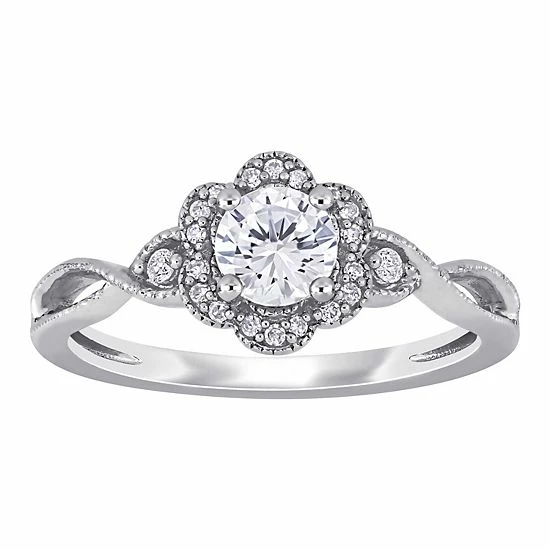 Put a sparkling vintage touch on your look with this Stella Grace sterling silver ring, adorned with lab-created white sapphires and genuine diamonds in a floral design.