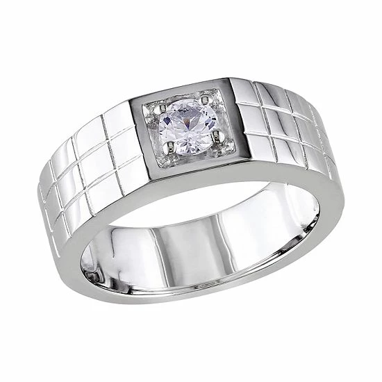 Striking and bold, this men’s sterling silver white sapphire ring will capture attention.
