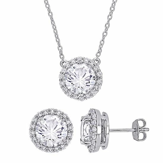 Complete your captivating look with this Stella Grace lab-created white sapphire pendant and stud earring set.