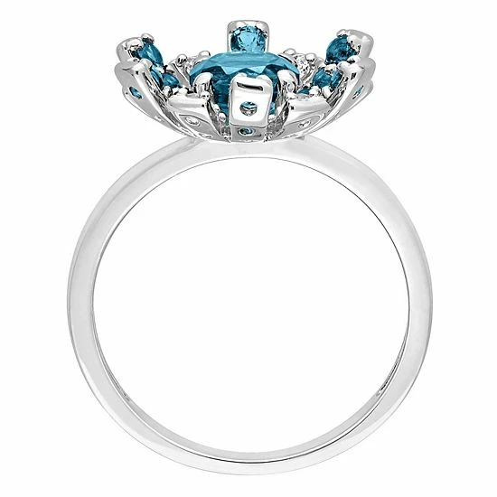 Decorated with an icy London blue and white topaz gemstones, this shimmering starburst cocktail ring is sure to get you noticed.