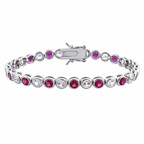 Lined from end to end with alternating red cubic zirconia and lab-created white sapphire gemstones, this Stella Grace tennis bracelet is a beautiful complement to your look.