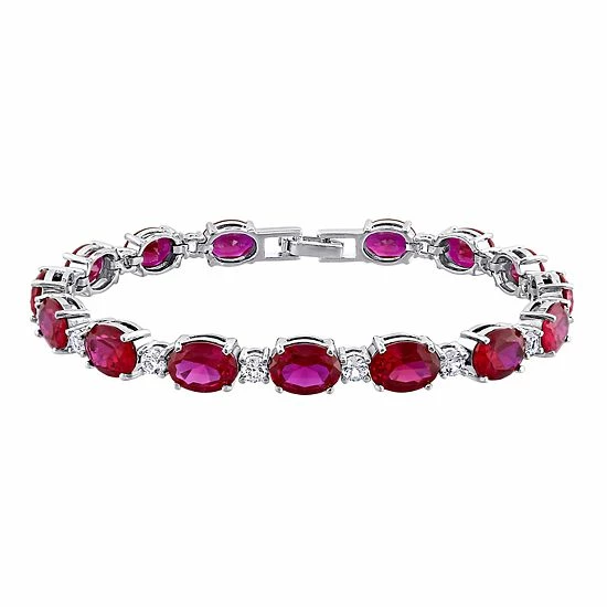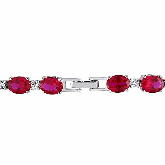 Featuring eye-catching red CZ and lab-created white sapphire gemstones, this Stella Grace tennis bracelet is a sophisticated addition to your look.