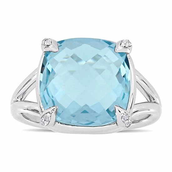 A cushion-cut genuine sky blue topaz center stone serves as the focal point on this sterling silver ring, while genuine white topaz accents add eye-catching sparkle.