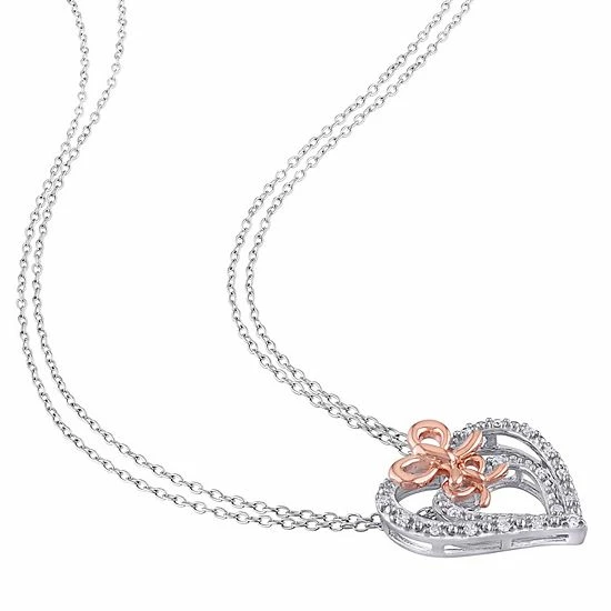 This gorgeous two tone sterling silver diamond heart bow pendant necklace is the perfect way to finish any outfit.