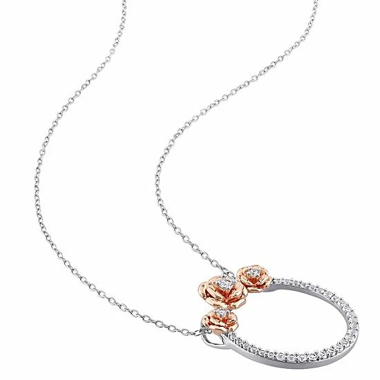Create an elegant look with this circle and rose two-tone necklace from Stella Grace, featuring beautiful white sapphire stones.