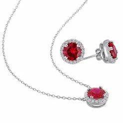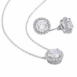 Stella Grace Sterling Silver Lab-Created Blue & White Sapphire Halo Earring & Pendant Necklace Set