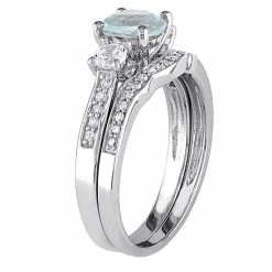 Stella Grace 10k White Gold Aquamarine, White Topaz & Diamond Accent Vintage Engagement Ring Set