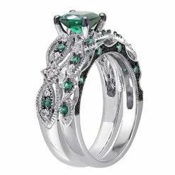Stella Grace 10k White Gold Aquamarine & 3/8 Carat T.W. Diamond Swirl Engagement Ring Set