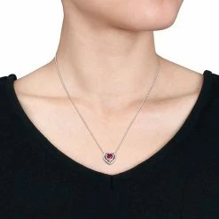 Stella Grace 10k White Gold 1/5 Carat T.W. Diamond & Lab-Created Ruby Heart Pendant Necklace