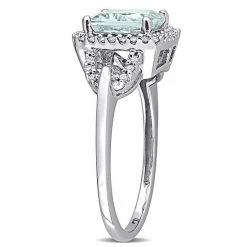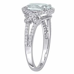 Stella Grace 10k White Gold Aquamarine & 1/3 Carat T.W. Diamond Halo Split Shank Engagement Ring