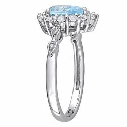 Stella Grace 10k White Gold Blue Topaz, White Sapphire & 1/5 Carat T.W. Diamond Halo Stud Earrings