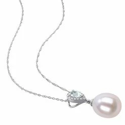 Stella Grace 10k White Gold Freshwater Cultured Pearl & 1/8 Carat T.W. Diamond Twist Pendant