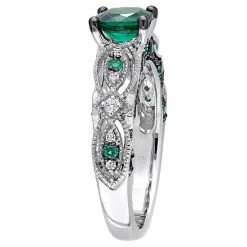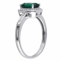 Stella Grace 10k White Gold Lab-Created Emerald & Lab-Created White Sapphire Halo Engagement Ring