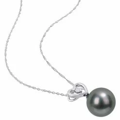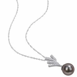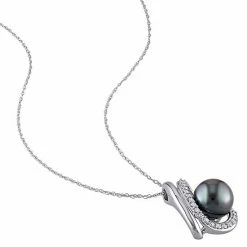 Stella Grace 10k White Gold Tahitian Cultured Pearl & Diamond Accent Curlicue Pendant Necklace