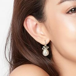 Stella Grace 14k Gold South Sea Cultured Pearl & 1/4 Carat T.W. Diamond Bow Hoop Drop Earrings